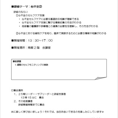 スタッフの成長を日々噛みしめ、うれしさ・楽しみを実感し、今年度も残すところわずかですが、スタッフと一丸となって患者さんの看護をしていきたいと思います。