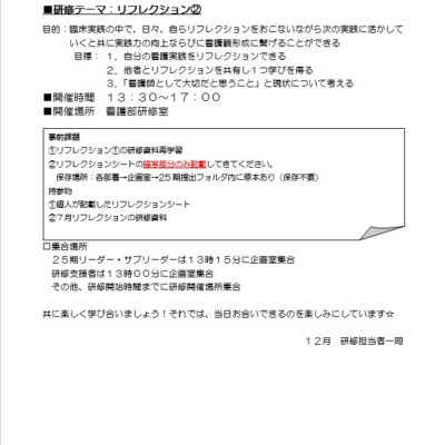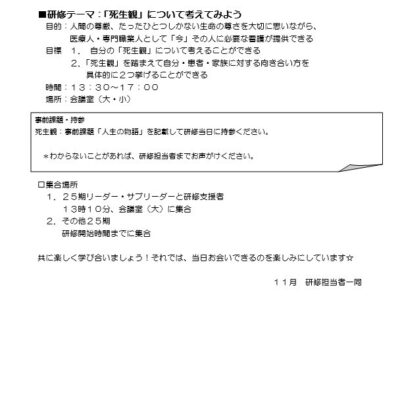 リーダーシップ研修は卒後3年目の看護師から実践していきます。
