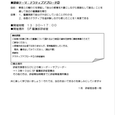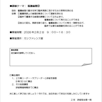 リーダーシップ研修は卒後3年目の看護師から実践していきます。