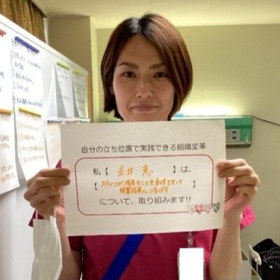 毎日コツコツと学び、笑顔で「できた!」「患者様が元気になってよかった!」と、看護を楽しんでいる新人看護師の姿を見ることが私はとても嬉しいです。