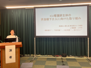 2025年10月4、5日に芦屋会館で開催された、第18回静脈経腸栄養管理指導者協議会学術集会において、「ICU看護師主体の摂食嚥下介入に向けた取り組み」という題名で発表を行い、認定看護師としてICU看護師への関わりの報告をさせていただきました。