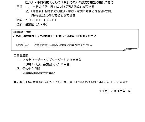 ◆お知らせ◆ジェネラリスト育成計画~ビギナーズ 11月研修