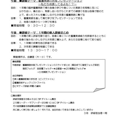 また、抄録やスライドをまとめるにあたり、副部長さんや師長さんと3年間の活動を一緒に振り返る中で「それ、すごいことだよ」などと、お言葉を沢山頂き今まで自分がなんとなくしていたことが、すごいことだったと気づかされることが多くあり、嬉しい気持ちになりながら取り組みました。