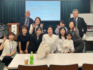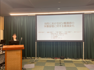 そしてある日、栄養コアチームの副部長さんより「栄養の学会に出てみない?」と声をかけていただき、最初は「私が学会にでるなんて、、、」と思いましたが、「ICUの栄養チームがやっていることはすごいことだから!」と背中を押され先輩スタッフと一緒に学会発表を決意しました。