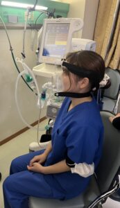 実際の機械を使ってNPPVマスク装着をした写真がこちらです。